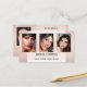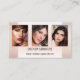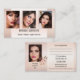 Un élégant carte de visite de rendez-vous avec 3 photos de votre choix (en option) encadrées par un design rose pêche à l'avant. Sur le dos est l'espace pour une autre photo avec des lignes pour ajouter des rendez-vous. La fleur à l'arrière est une image séparée et peut être traînée, mise à l'échelle ou aussi supprimée si vous n'en avez pas besoin. Un beau carte de visite pour esthéticienne ou maquilleur.