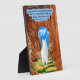 Belle Plaque 5 x 7 Ecritures, avec un chevalet, d'une scène colorée et détaillée où un somptueux Eskimo Chien blanc américain se promène sur un chemin vert irisé en pierre avec des murs en pierre rouge vers une porte en roche rouge voûtée. La porte s'ouvre sur un beau ciel nuageux bleu. Cette scène accompagne le verset de la Bible Proverbes 16:9 : "Le coeur de l'homme conçoit sa voie; mais l'Éternel dirige ses pas." Cette plaque fait un merveilleux cadeau ou peut être utilisée pour nous rappeler la Parole de Dieu.