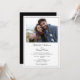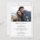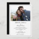 Ce faire-part de mariage simple comporte une photo horizontale à l'avant et un texte simple pour l'invitation. Le côté arrière est noir avec une boîte blanche contenant les directions RSVP.