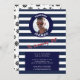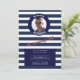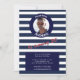 Photo Bleu Nautique rayée Invitation Anniversaire