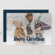 Cartes de Noël bleues personnalisées avec une photo et une police de vacances amusante sur le devant et la chute de neige sur le dos. Personnalisez facilement ces cartes photo de Noël avec votre image et votre texte.