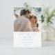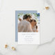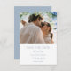 Cette belle carte chic bleue et blanche de mariage 'Save The Date' présente une photo de couple avec une belle aquarelle d'hydrangée. La modèle comprend un ensemble contemporain de polices bleues poussiéreuses, contre un arrière - plan blanc à l'avant et un bleu poussiéreux à l'arrière. Cet article fait partie d'une collection complète de suites mariages qui comprend des invitations et d'autres mariages stationnaires.