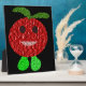 Cette magnifique plaque comporte un joli dessin d'une tomate souriante aux yeux noirs, à la bouche rose et aux pieds verts mignons.
