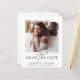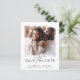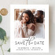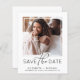 Budget peu coûteux économisez la carte d'annonce de date avec votre photo dans un cadre carré découpé et une typographie moderne minimale avec une touche d'élégant script. Personnalisez avec vos prénoms, votre date mariage et votre emplacement. Au contraire, customisez les détails de la date et ajoutez vos noms dans un script de type signature.