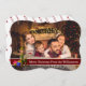 Un design moderne de carte de Noël avec votre photo de famille remplissant le visage de la carte. Décor ludique avec bande de texte rouge foncé pour vos mots.
