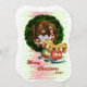 Photo personnalisée Noël dans un design élégant et élégant avec une belle couronne de Noël avec un grand ruban d'or en rouge, arrière - plan d'aquarelle verte. Voir d'autres modèles de Noël dans la collection "Cheers of Christmas".