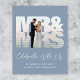 Élégant, unique et économique, cet élégant appartement bleu roux ou faire-part de mariage privé et invitation à la réception. L'avant présente votre photo dans un cadre "Mr & Mrs", "Celebrate With Us" dans un script blanc élégant et vos noms, date mariage et emplacement dans une simple typographie blanche. Au verso, customisez votre invitation à la réception et ajoutez vos noms de mariés dans un script blanc signature.
