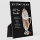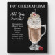 Accueillez une barre de chocolat chaud amusante et délicieuse et ajoutez votre liste de garnitures à cet élégant panneau de la gare. Illustration à l'honneur : Chocolat chaud dans une tasse en verre garnie de crème fouettée, de croustilles et d'une cerise