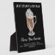Accueillez une barre de chocolat chaud amusante et délicieuse et ajoutez votre liste de garnitures à cet élégant panneau de la gare. Illustration : Chocolat chaud dans une tasse en verre garnie de crème fouettée et d'un bonbon de menthe poivrée