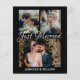 Annoncez votre mariage à vos amis et à votre famille par cette carte moderne. Le design a 3 collage photo à l'avant avec la calligraphie blanche "Just Married" texte et les noms des nouveaux mariés. Sur le dos, vous avez une photo en haut et détails du mariage paragraphe de texte ci-dessous. Personnalisez la carte avec vos photos, les détails du mariage, la date du mariage et les noms.
