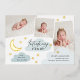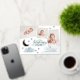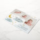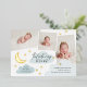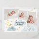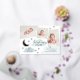 Un design de faire-part de naissance amusant mais élégant avec un collage photo 3 avec script de calligraphie élégant et des étoiles dessinées à la main, des nuages et une lune croissant. Les étoiles et la lune viennent en feuille réelle (couleur de votre choix). Toutes les couleurs sont modifiables à l'aide des outils d'édition.
