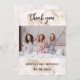 Un carte photo Merci d'anniversaire moderne. pivoine blanche, fleur comme arrière - plan. Personnalisez et ajoutez votre photo et merci note.