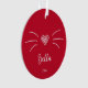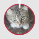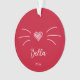 Ornement de chat rouge personnalisé mignon. Un côté a des moustaches de chat mignon et le nom du chat en écriture. Le verso comporte votre photo préférée de votre chat.