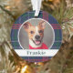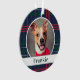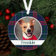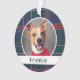 La décoration de vacances parfaite pour les amoureux des animaux de compagnie en famille ! L'ornement de vacances élégant et festif comprend une photo préférée de votre chien chiot (ou autre animal de compagnie) avec un texte monogramme vert chasseur qui peut être personnalisé avec leur nom et un classique bleu marine, vert chasseur et rouge écossais plaid arrière - plan à motif de plaid. Conseil : recadrez votre photo au format carré avant de la télécharger sur le site.