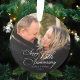 Célébrez votre amour avec notre Ornement Photo de Couple pour Anniversaire Élégant, mettant en vedette votre photo de couple préférée et la date de votre anniversaire personnalisée en calligraphie élégante. Ce souvenir moderne est le moyen idéal pour honorer votre jour spécial, en faisant un cadeau attentionné et intemporel pour toute célébration d'anniversaire !