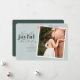 Une carte moderne avec le message "Nous sommes très joyeux ce Noël" est parfaite pour annoncer la grossesse de votre famille. Personnalisez avec vos noms, votre photo préférée et un court message. Image couleur verte de Jessica Rockowits sur Unsplash