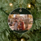 Célébrez la saison des Fêtes avec cet élégant ornement de Noël en photo de famille. Doté d'un arrière - plan moderne vert foncé et d'une calligraphie stylisée qui lit Joyeux Noël, ce design met en valeur votre photo de famille préférée au centre. Personnalisez-vous avec votre nom de famille et l’année en bas, c’est la façon idéale de transmettre l’amour, la joie et les salutations festives à votre famille et à vos amis. Customisez le message au dos et ajoutez les prénoms de famille. Faites une tradition d'avoir un nouvel ornement photo famille chaque année.