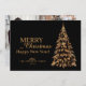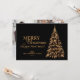 La carte de vacances noire moderne est la bienvenue de vacances simple parfait. Le design classique moderne comprend des tourbillons fantaisistes et des fleurs fantaisistes avec de l'or magnifique. Personnalisez l'avant de la carte votre nom de famille et l'année.