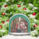 Il y a une photo de famille temporaire dans une arche, entourée d'une arche verte avec du texte blanc et des flocons de neige.