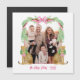 Cet aimant de Noël présente un design grandmillennial prépa avec une guirlande de Noël avec des léopards portant des couronnes entourant votre photo préférée sur fond blanc. Le bas comporte un texte rose vif que vous pouvez personnaliser avec un nom.