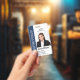 Personnalisez facilement ce badge d'identité professionnel bleu avec vos informations personnalisées.
