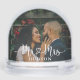 Ce globe à neige de mariage romantique présente votre photo préférée avec 'M. et Mme' en belle écriture calligraphique blanche et votre nom de famille superposé sur l'image. Le dos affiche une deuxième photo de mariage pour un souvenir à deux faces époustouflant. Niché dans la neige qui tombe, cela fait un cadeau sincère pour les jeunes mariés ou un memento de vacances précieux pour le couple heureux. Tous les textes et photos sont entièrement personnalisables.