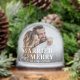 Marquez la magie de votre premier Noël avec ce globe de neige Marié & Joyeux personnalisé par Redwood & Vine Design Co. Les deux côtés présentent votre photo mariage choisie, les noms, et l'expression Marié & Joyeux dans le type élégant, créant un bel affichage double face. Un véritable cadeau de vacances ou un cadeau de coeur pour les jeunes mariés, ce globe mêle romantisme et gaieté saisonnière en un seul morceau intemporel.