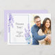 REMERCIEMENTS PHOTO | Ajoutez votre photo - Fleurs d'aquarelle lavande fraîche et propre avec des fleurs bleues poussiéreuses et des baies. Le verso est d'une couleur coordonnée complémentaire. Personnalisez le texte, le style de police, la couleur et la taille. Création pour BarefootBride™ par © WhimsicalArtwork™ - Ceci fait partie d'une suite complète de papeterie de mariage avec papeterie de mariage, de baby shower et d'autres événements correspondants.