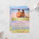 Célébrez votre histoire d'amour côtier avec cette invitation de mariage moderne sur la plage, avec une photo audacieuse pleine largeur, des accents d'aluminium doré et des vagues pastel. La palette de couleurs ensoleillées évoque les ambiances tropicales, ce qui en fait l'endroit idéal pour les mariages de destination, les célébrations balnéaires ou les voeux d'été. Customisez avec vos noms, lieu et date pour une première impression époustouflante que vos invités n’oublieront pas.