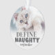 Ornement de photo de chat personnalisé "Définir méchant". Ajoutez une touche d'humour à votre décoration de vacances avec cet ornement de chat amusant, parfait pour ceux qui ont un chaton malicieux ou un chat impertinent. Le devant présente le texte ludique "Définir méchant" ainsi que le nom de votre chat, capturant la personnalité effrontée de votre félin. Il y a également de la place pour une photo de votre chat pour ajouter une touche personnelle. Le dos présente un design d'empreinte de patte avec un cœur découpé au centre, ce qui le rend encore plus spécial. La couleur de la police et l'empreinte de patte peuvent être personnalisées pour s'adapter à votre style. Ce souvenir humoristique est parfait pour les amoureux des chats, ce qui en fait un cadeau amusant pour les vacances, les anniversaires ou juste pour le plaisir