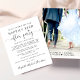 Annonce de save the date économique pour une réception ou une fête pour célébrer votre évasion ou votre mariage intime. Le recto présente "Save the Date For Our Happily Ever After Party" dans un mélange de typographie simple et d'un script élégant avec des fioritures, et vous pouvez personnaliser votre annonce de mariage avec plus de détails et ajouter les détails de la fête ou de la réception ainsi que vos noms dans un script qui ressemble à une signature. Le verso présente votre photo de mariage préférée, vos prénoms et les dates du mariage et de la réception.