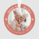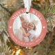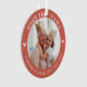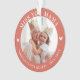 Ornement moderne élégant et tendance de souvenir de perte, votre photo préférée dans un cadre rond, lettrage circulaire, cœurs de décoration se chevauchant sur un fond rouge rouillé.