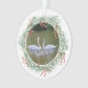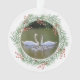 Jolie photo d'une grande famille de cygnes encadrée d'une couronne de fraise. Le côté arrière a un motif de flocon doré et le message Joyeux Noël. Changez l'année ou personnalisez-la avec votre nom. Le Arrière - plan peut également être changé en couleur de votre choix.