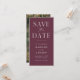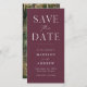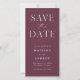 Annoncez votre date de mariage avec cette photo moderne et élégante enregistrez la carte de date. Le design comporte "Save the Date" sur le devant en serif blanc et des polices de caractères avec un arrière - plan vin/violet. Personnalisez le minimaliste enregistrez l'annonce de date en ajoutant vos noms, date et emplacement mariage. La carte inverse pour afficher votre photo fiançailles préférée. Le simple enregistrement de la date annonce est parfait pour n'importe quel thème mariage.