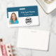 Créez vos propres badges et étiquettes nominatives personnalisés pour employés à l'aide d'un modèle élégant et moderne à orientation verticale, facile à personnaliser avec votre photo, logo d'entreprise, code-barres et autres informations importantes. Un design professionnel simple en violet et blanc avec nom, titre et code-barres. Aucun minimum de commande.