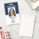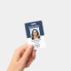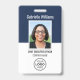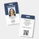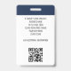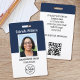 Créez une apparence professionnelle avec un badge d'identification d'employé à l'image de votre marque. Téléchargez votre propre logo d'entreprise et photo de profil, et personnalisez le texte avec un nom, un titre de poste et un nom d'entreprise. Les informations de retour sont au dos, ainsi que des informations supplémentaires et un code QR. Parfait pour créer une expérience de marque cohérente, ou simplement pour vérifier l'identité du porteur et afficher ses qualifications. Ce badge d'identification est idéal pour les rôles en contact avec la clientèle et les environnements d'entreprise ; des consultants en entreprise et magasins de détail aux professionnels de la santé, personnel hospitalier, employés de bureau, équipes de conférence, événements d'entreprise et plus encore. Les badges personnalisés renforcent l'identité de la marque et améliorent la sécurité. Modèle entièrement éditable. Couleurs d'impression : bleu marine très foncé, gris et blanc. Format vertical. Explorez la collection