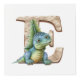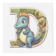 Cette image représente une pièce éducative ludique avec des lettres de l'alphabet et chaque lettre associée à un dinosaure dont le nom commence par cette lettre, illustrée dans un style fantaisiste et adapté aux enfants.