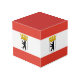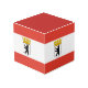Photo Cube avec variante du drapeau de Berlin, drapeau de l'état avec bandes horizontales de rouge et blanc, avec une illustration d'un ours noir à l'intérieur d'un bouclier avec couronne