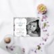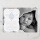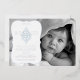 Ajoutez simplement votre photo en couleur ou en noir et blanc, ainsi que les noms de famille et les détails de naissance et personnalisez ce bleu et blanc doux avec le texte en feuille d'argent fleur de lis Croix chrétienne vintage design pour annoncer votre nouveau bébé garçon. Design original par Holiday Hearts Designs (tous droits réservés).