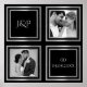 Poster noir et blanc chic, sophistiqué et glamour conçu pour les souvenirs du jour de mariage. Il présente de grands carrés argentés brillants reliés de manière complexe pour créer un effet carrelé, avec l'option de customiser avec deux photos du couple et des champs de texte pour insérer les initiales du couple, et la date du mariage. Vous pouvez personnaliser chaque texte individuellement ou les supprimer, et la couleur arrière - plan peut être ajustée pour convenir à votre style unique.