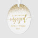 Pour votre premier Noël engagé, cet élégant ornement de vacances présente un simple faux design de typographie de parties scintillant d'or qui dit "Notre premier Noël engagé" avec vos prénoms et votre année pour personnaliser sur blanc. L'arrière de l'ornement comporte une photo que vous pouvez changer à votre propre. Bonne chance à votre futur mariage ! Conçu par l'artiste ©Susan Coffey.