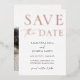 Foil pressé Mariage Sauvez la Date avec une ambiance moderne et élégante. Inclure votre photo à l'arrière ou supprimer et laisser vide. Éditez avec votre libellé et choisissez parmi trois couleurs de feuille différentes, dont l'or, l'argent et l'or rose.