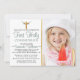Invitation élégante moderne pour la première célébration de communion de votre fille. L'invitation est si belle avec une croix dorée et les styles de police manuscrits géniaux. De plus, nous avons fait l'invitation avec personnalisation supplémentaire avec la photo de votre fille pour le rendre plus unique et spécial. Il suffit simplement de prendre une photo avec votre téléphone et de l'ajouter au cadre de perles moderne. Contactez-moi si vous voulez des personnalisations supplémentaires ou des exigences de conception spéciales. Je suis ici pour vous servir.