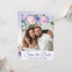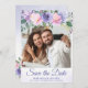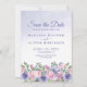 Moderne periwinkle violet et rose aquarelle photo florale enregistrer la carte de date, avec un arrière - plan peri très léger texturé. Nom, date et information de la Personnaliser.
