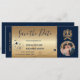 Destination Beach Wedding Boarding Pass Billet Gold Plane Sauvegardez la Date avec l'icône du coeur et de l'avion avec une fausse crête d'or. Ajouter votre photo