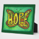 Le mot inspirant "Espoir" apparaît sur les ailes d'un papillon vert. Les verts doux du papillon sont complétés par des bandes de couleur jaune et orange. Il y a de petits accents de parties scintillant dorée. La peinture a été rendue en aquarelle. Personnalisez ce tableau d'art papillon avec votre propre texte ou images en utilisant l'option "Customiser". Il fait pour un grand cadeau de soutien patient ou soignant!