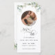 Dégustez vos invités avec cette photo élégante Enregistrer le signet de date. Conception avec une aquarelle peinte à la main, feuillage de verdure fleurie dans les tons vert, olive, bleu poussiéreux et turquoise, encastrant votre photo dans un cadre de superposition circulaire attrayant. Jolie phrase "Save the Date" dans la calligraphie manuscrite moderne. En haut de l'espace central clair en coque, vous souhaitez avoir la possibilité de frapper un tout, et embellir la signet avec un ruban décoratif. Ajoutez vos noms, date, lieu et toute autre information supplémentaire que vous souhaitez. Retour avec verdure fleurie encastrant élégant logo "nouvelle date" avec la phrase "sauver la date" dans la calligraphie moderne, votre date et nom de mariée et de mariée.