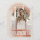 Célébrez les réalisations de votre diplômé avec cette faire-part distinctive et féminine. Customisez ce deux (2) photo design avec vos détails personnels. Le mot GRADUATE et le graphique à arc floral ont un faux or rose métallique et un effet en relief subtil. Le mot "diplômé" ne peut pas être changé. Le reste du texte de la carte est modifiable.