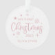 Typographie rose festive, Mon premier Noël, ornement photo. Caractéristiques, lignes de texte modèles pour le nom et l'année avec support photo unique.