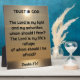Une belle photo du soleil d'été qui brille sur l'océan est présentée sur cette plaque de table avec chevalet. Avec le message : "Confiance en Dieu, le Seigneur est ma lumière et mon salut; qui devrais-je craindre? Le Seigneur est le refuge de ma vie; de qui devrais-je avoir peur?" Psaume 27:1 Fait un grand cadeau pour Anniversaire, Encouragement ou juste pour rappeler à quelqu'un que Dieu est toujours avec eux!
